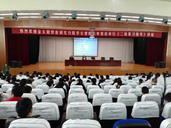 4月1日上午9点至12点,亳州一中南校特邀江西金太阳研究分院院长李长健到校做2017届高考备考《二轮复习指导》专题讲座。学校领导、全体教师以及高一、高二、高三实验班学生参加了本次讲座,来自其他兄弟高中学校的部分教师也参加了此次会议。会议由副校长梁彩霞主持。