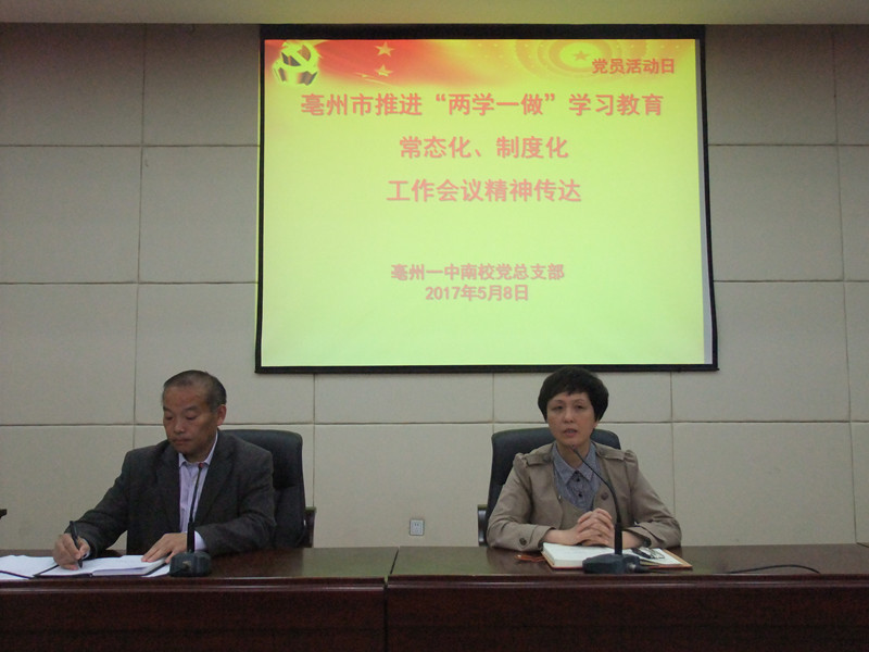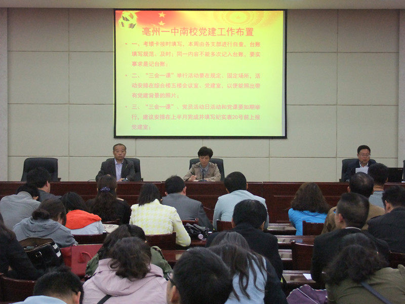 第二,布置亳州一中南校近期党建工作。郭飞峰同志就考绩卡和纪实表填写、基层党组织标准化建设、“三会一课”、党员活动日、微型党课比赛等事宜作了详细指导和具体安排。