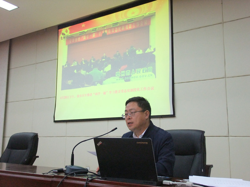 本次活动主要开展两项内容。第一,郭飞峰同志利用精心制作的课件,传达了全省“两学一做”学习教育常态化制度化工作会议精神,重点学习了汪一光书记在全市推进“两学一做”学习教育常态化制度化工作会议上的讲话精神。他强调,学习汪书记讲话,要着重领会和落实六点精神,即推进“学”的常态化制度化,确保学得深、学得真;推进“做”的常态化制度化,确保做得实、做得好;推进“改”的常态化制度化,确保改彻底、改到位;推进“建”的常态化制度化,确保基层组织坚强有力;着力抓好创新举措,认真开展专题教育;全面加强组织领导,确保工作取得实效。