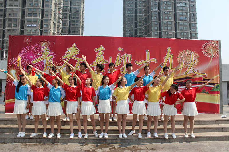 夏日的炎热丝毫挡不住同学们演出的热情,他们用自己的舞姿和歌声向全市人民展示了一中南校学子的青春活力和良好精神面貌,赢得了在场观众的阵阵掌声。酷热的天气里,志愿者身穿带有亳州一中南校标志的熊本熊玩偶,在广场上向前来游玩的亳州市民发放学校宣传手册,引来众人围观。