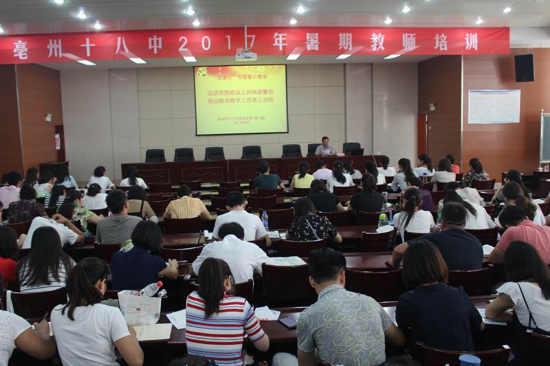 8月25日上午,利用暑期教师培训会议,我校党总支组织开展了“促进思想政治上的高度警觉,推动教育教学工作再上台阶”专题学习培训活动,党总支部副书记郭飞峰主持了培训,全体教职工参加了本次培训会。