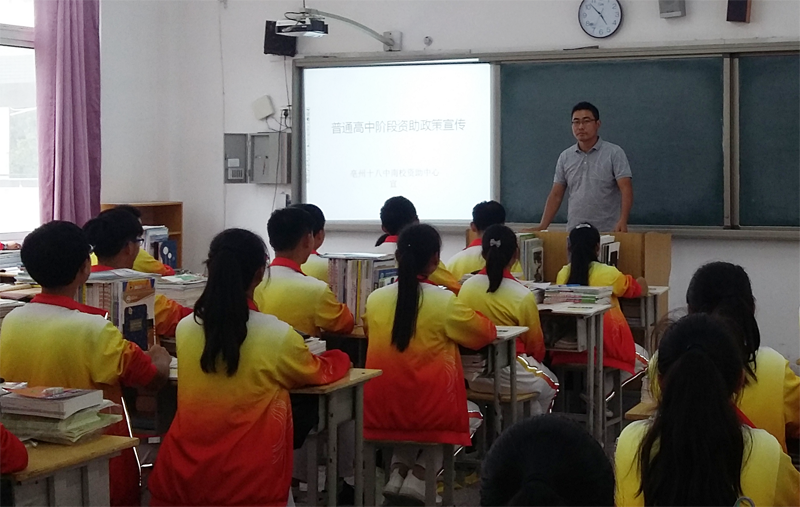 为保证我校每一位贫困学生享受到自己应该享受的资助政策,把我校教育扶贫攻坚工作切实落到实处,亳州市第十八中学开展资助政策宣传月主题班会活动。