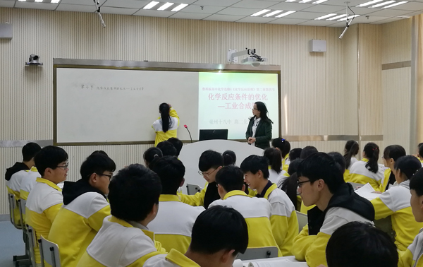 本节课题为《化学反应条件的优化——工业合成氨》,张红岩精心设计课堂环节,比如用化学史引入课题——“如何选择工业合成氨的条件”,学生一下子被吸引了,并通过合成氨的发展体会实际生产的复杂性。课中注重化学理论的分析与实际应用,尤其在最后视频播放“我国合成氨现状”,既让同学们体验到化学在工业生产中的应用,又提升学生的爱国主义情怀。
