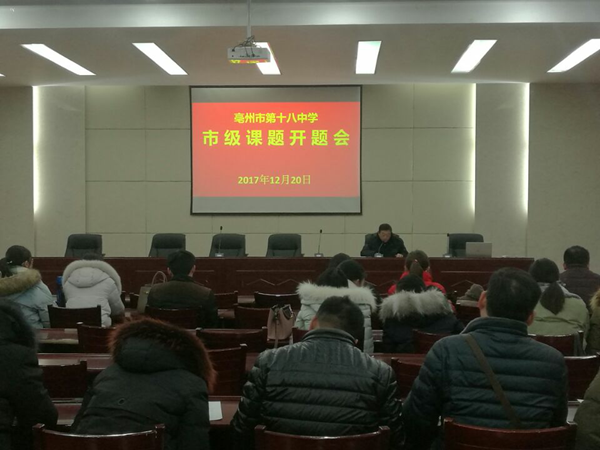 12月20日,亳州市第十八中学2017年市级课题开题会在至真厅召开,7个课题组的负责人和成员参加会议。