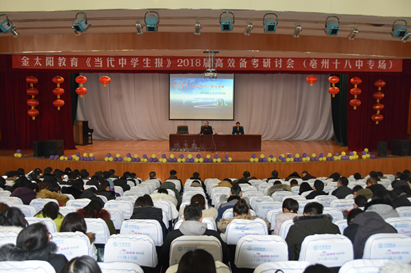 1月13日,亳州十八中举行2018届高效备考师生研讨会,金太阳教育集团首席研究员卢晓军为全体教师和高三部分学生上了一节别开生面的课。