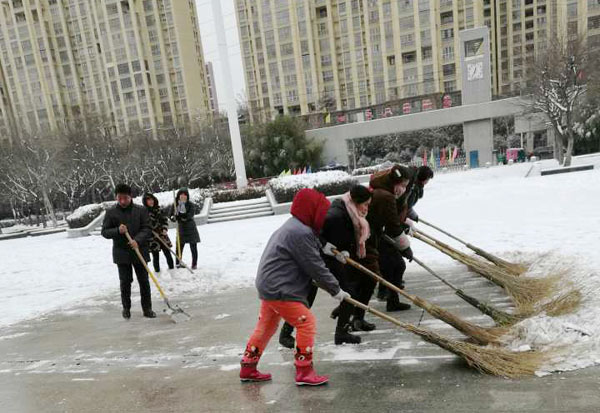 亳州十八中领导教师齐上阵 清扫积雪效率高