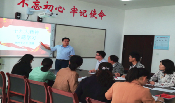 党员们认真聆听党课,积极记录党课要点,课后大家各抒己见,谈论自己学习十九大的心得感受,纷纷表示十九大既为社会主义现代化建设擘画了蓝图,也为广大党员教师今后的教育教学工作指明了方向。(供稿:景宁宁 李明)