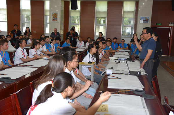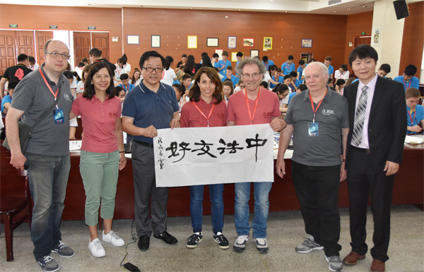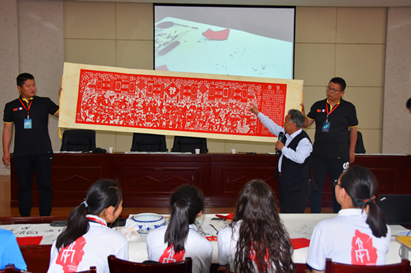 代表团师生参观了十八中校园,在著名书法家张向东和剪纸艺术非遗传承人王炳华先生的现场教授下学习书法和剪纸,并品尝了中国特色美食,学校还安排了葫芦丝特色课、五禽戏展示和穿越呼啦圈、两人三足等体育活动。法国师生们对中国传统文化表现出极大兴趣,大家学得认真、剪得用心,在交流过程中不仅感受到中华文化的魅力,也收获了快乐和友情。(供稿:任相茹)