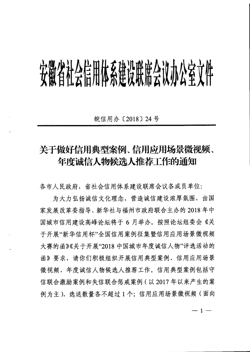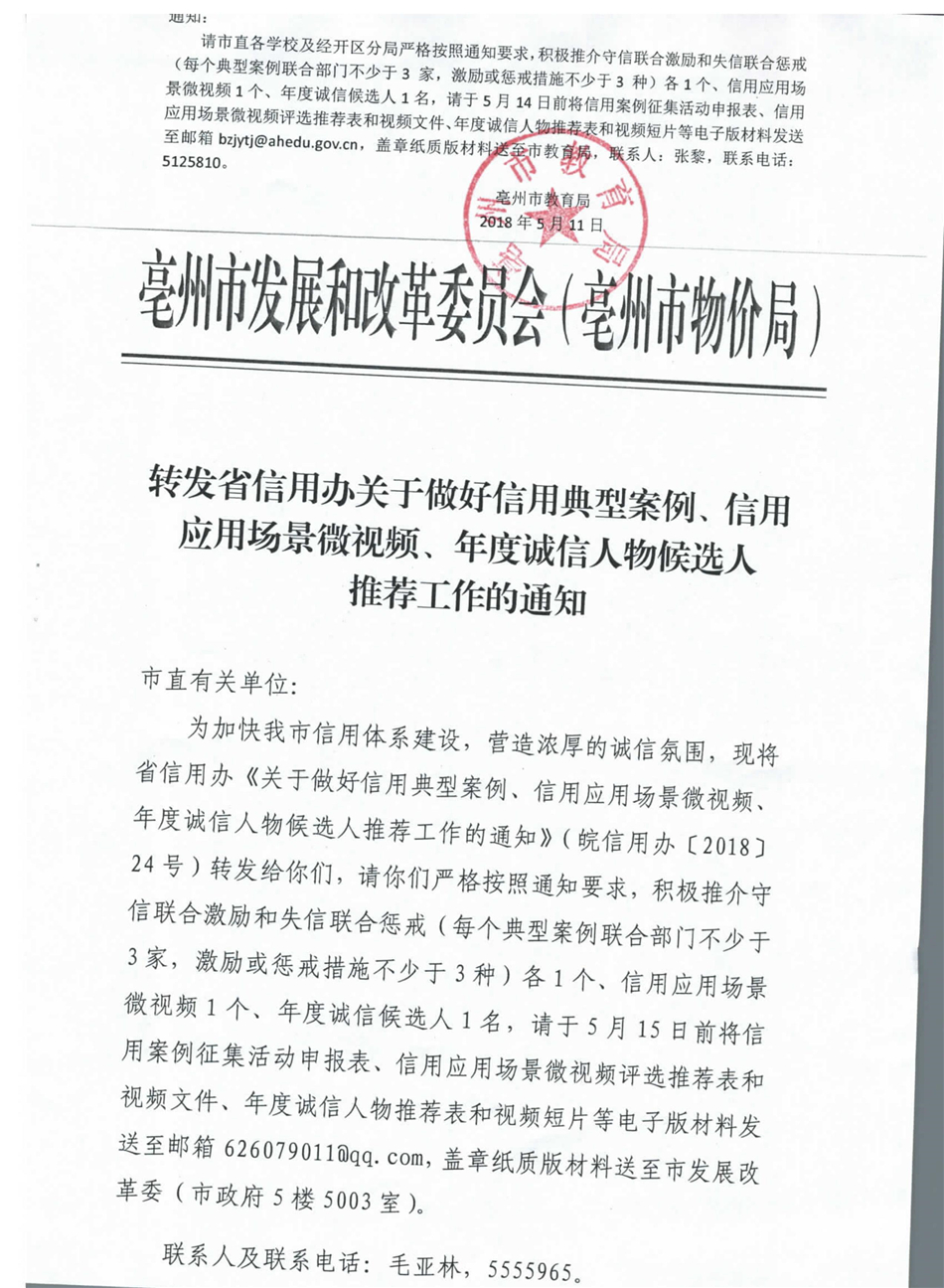 转发省信用办关于做好信用典型案例、信用场景微视频、年度诚信人物候选人推荐工作的通知