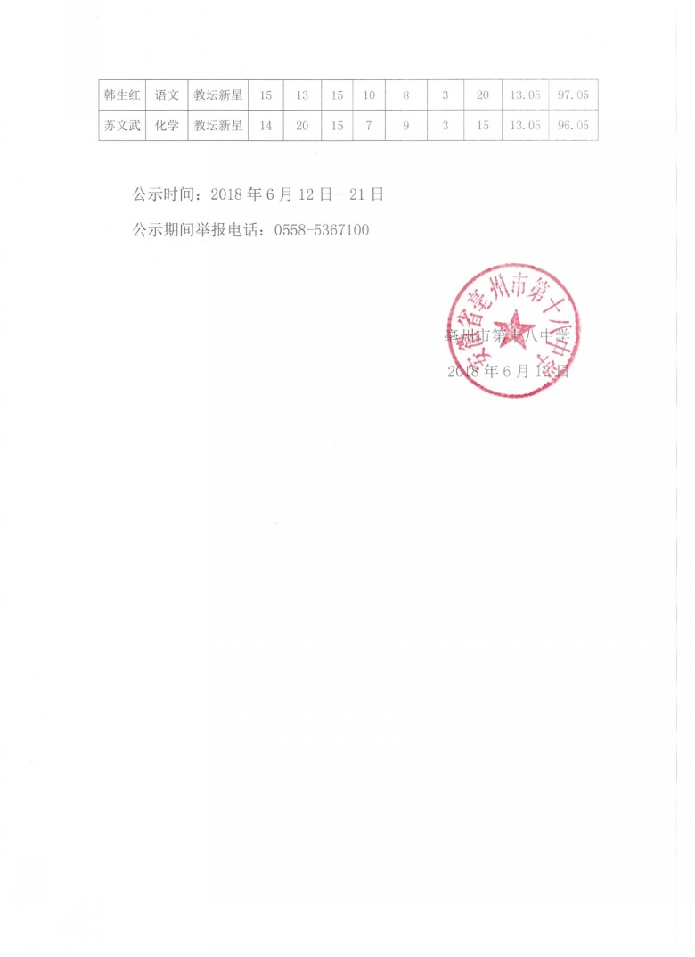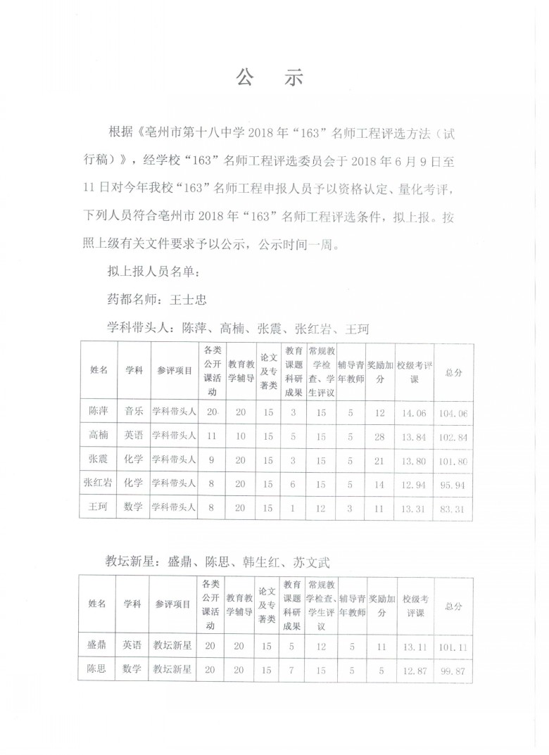 亳州十八中2018年“163”名师工程拟上报人员名单公示