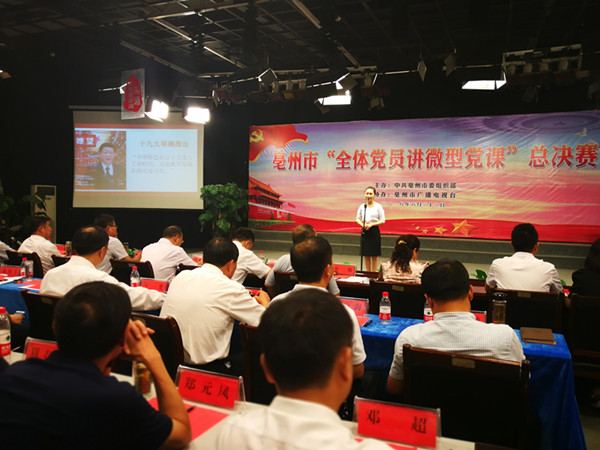 6月22日下午,亳州市全体党员讲微型党课总决赛在市电视台演播大厅拉开帷幕。来自全市三县一区、市直工委、经开区党工委的12名选手同台讲党课,亳州十八中选手徐明菲同志发挥出色,勇夺桂冠。